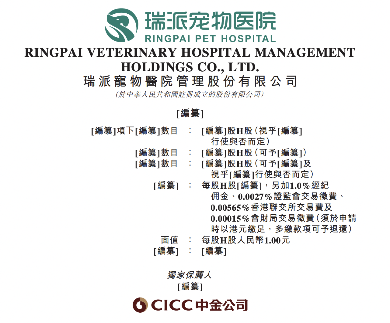 瑞财经 刘治颖 12月22日,瑞派宠物医院管理股份有限公司(以下简称:瑞派宠物)向港交所主板递交上市申请,中金公司为独家保荐人。